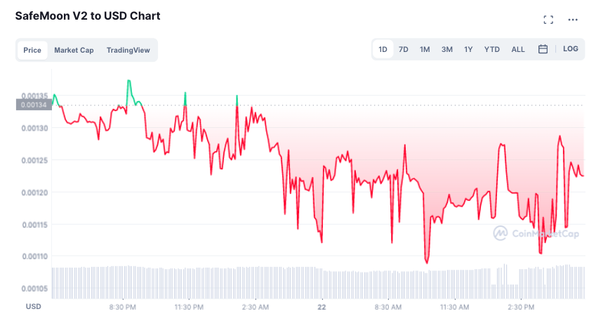 SafeMoon was the token that was the quickest to make up for its losses. After visiting a level as low as $0.001088 during the early hours of Tuesday, SafeMoon V2 was back to trading around $0.00123 at press time, thereby capping its 24-hours losses to merely 3%.