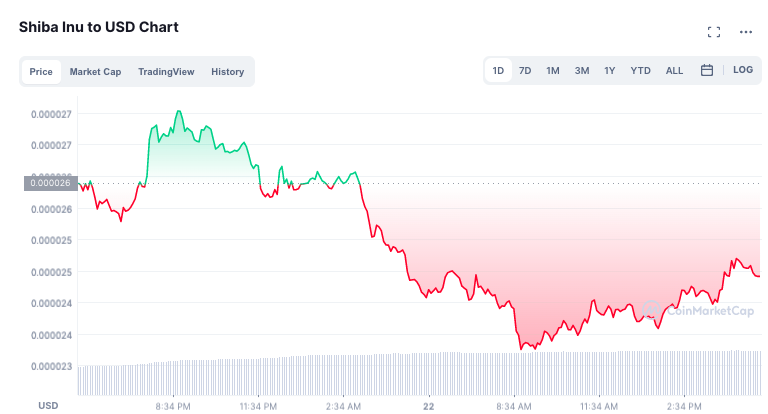 Shiba Inu was the worst affected among the three coins, for its daily losses had extended upto 7.75%. At the time of press, the second-largest meme token was seen exchanging hands right under $0.000025.