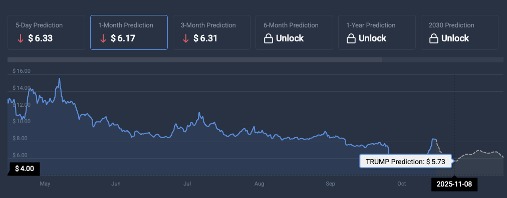 CoinCodex analysts also paint a bearish picture for Trump Coin. The platform anticipates TRUMP’s price to fall to $5.73 on Nov. 8. Falling to $5.73 from current price levels will entail a correction of about 30.46%.