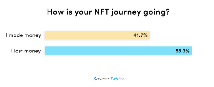 “Although the primary reason why people buy NFTs is to make money, the majority of NFT holders who participated in our poll (58.3%) said that their NFTs haven’t been that profitable so far.”